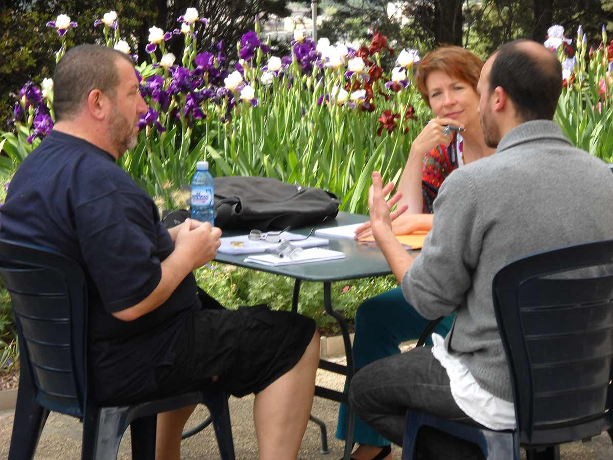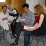 Au château, la consultante Maggie Soboil a travaillé avec les auteurs sur l’interprétation d’une scène de leur scénario. Le but de cet atelier est de trouver la vérité émotionnelle des personnages, en particulier dans les scènes majeures de l’histoire. Maggie Soboil aide les scénaristes à les redimensionner et à les rendre encore plus crédibles. Le comédien Didier Flamand, déjà présent pour la journée casting et le café ciné, a mis son talent au service des participants.