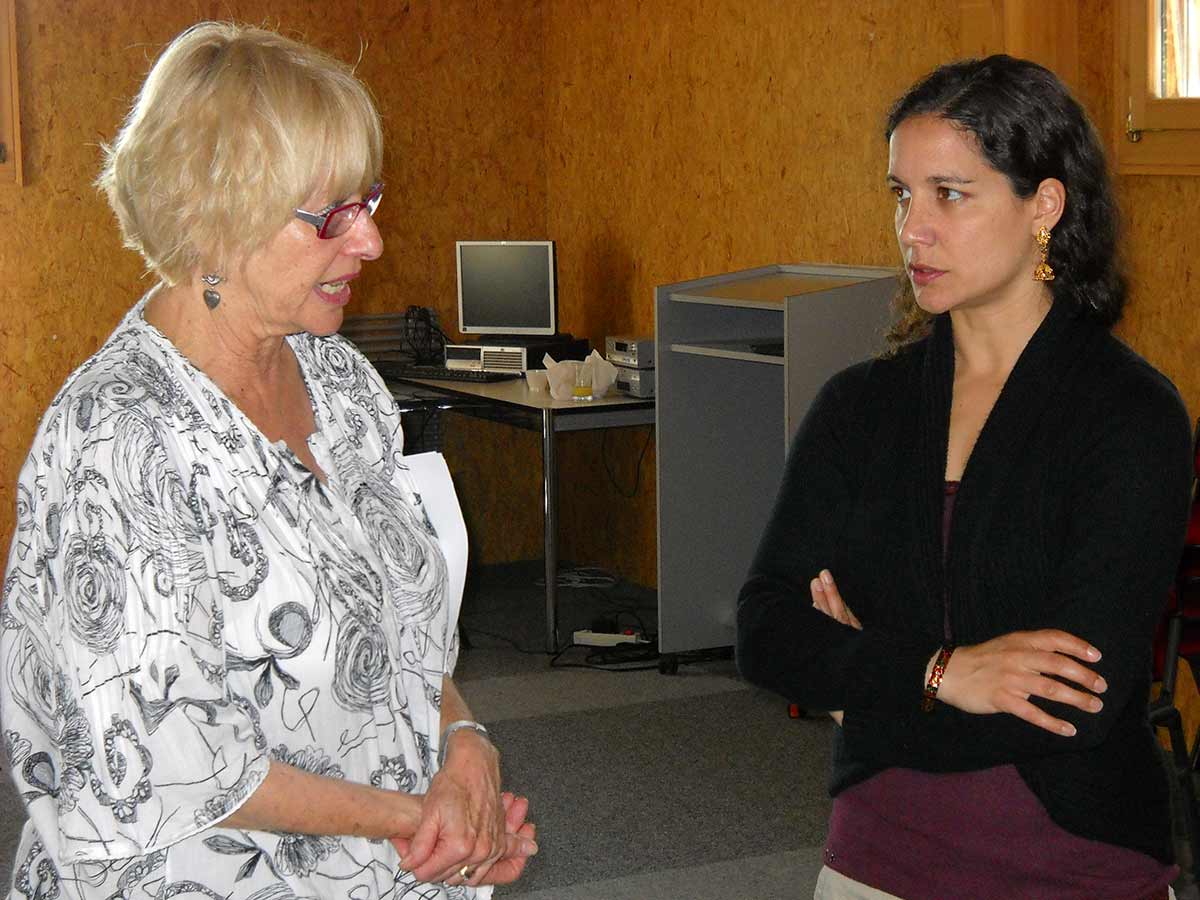 Le travail intensif dans l’atelier de Maggie Soboil a continué toute la journée. Les groupes sont divisés en trois (un par langue : français, anglais et espagnol), pour que les participants puissent travailler dans leur langue maternelle, aidés d’un interprète, et avoir ainsi un accès plus direct à leurs émotions.