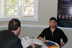 Mardi, premier jour de notre événement « Meet Your Match » : Au cours de la matinée, les auteurs des sept scénarios sélectionnés, en 2012, ainsi que ceux sélectionnés l’an dernier, Alejandro Seri, Mark Stratton, Silenn Thomas, Sheila Sawhny, ont pitché leur scénario à 12 producteurs, sous la forme de rencontres en speed dating, afin de donner à chaque auteur un accès optimal à tous les producteurs, et de maximiser la connexion entre producteurs et projets à suivre. Les auteurs étaient souvent venus de loin, Argentine, France ou Suisse, pour profiter de l’opportunité d’avoir ces dix minutes d’écoute de la part d’un producteur intéressé.